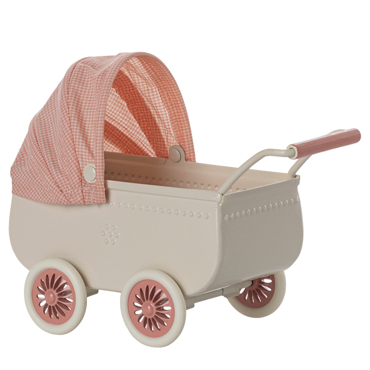 Barnevogn til mus (One size) Den fine barnevogn har et nostalgisk design og kommer med en blød madras og en lun sovepose. Perfekt til de små babymus, så forældrene kan tage dem med på en hyggelig gåtur. Coral