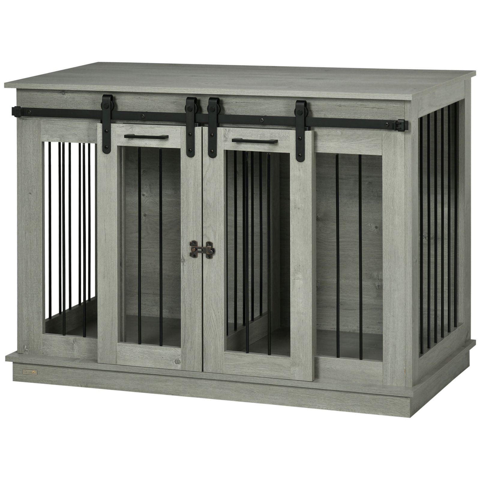 Hundebur med 2 døre, hundebur, transportkasse til hunde, rustikt design, låsbar, grå
