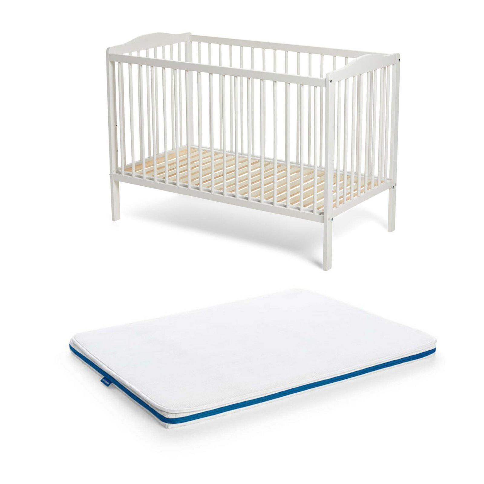 Klassisk, hvid tremmeseng fra JLY med en polstret, 3D madras, der byder på både isolering og åndbarhed. Den har et maskinvaskbart madrasbetræk, der absorberer fugt uden at føles fugtigt. Perfekt til en god nats søvn.