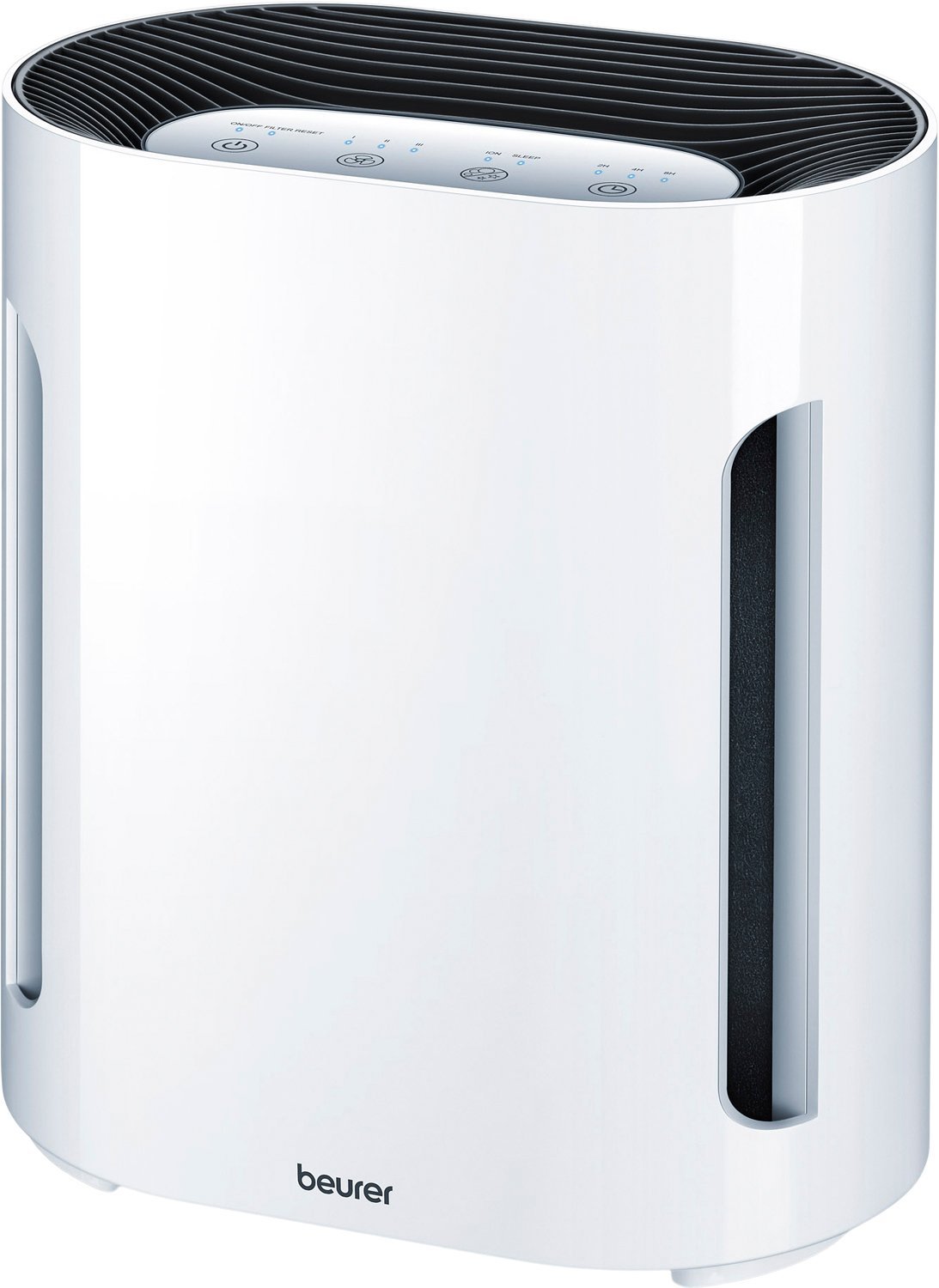 Sov godt om natten og nyd et sundt indeklima med luftrenseren LR 210 Specifikationer Luftrenser med trelagsfilter inkl. HEPA H13 filter Egnet i rum op til 28 m² Natfunktion, 3 blæsehastigheder og ionfunktion Denne luftrenser fra Beurer er udstyret med et