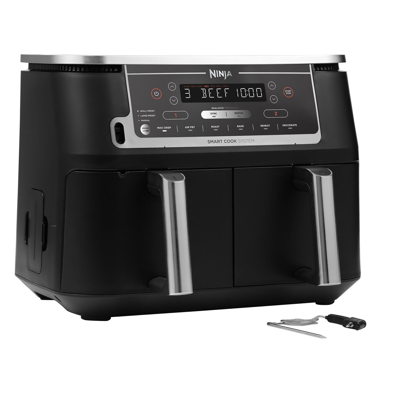 Ninja Airfryer Max Foodi Dual Zone AF451EU er et innovativt køkkenapparat, der tilbyder en alsidig og sund madlavningsløsning. Med Dual Zone teknologien kan du tilberede to forskellige retter på samme tid, så du sparer tid og kræfter. Hver zone kan styres